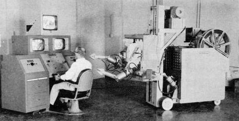 The first “manipulator operated robot” (Mobot) was built for the Atomic Energy Commission to work in a radioactive environment. Photo courtesy September 1960 Popular Mechanics article, “Marvelous Mobot Will Do Work Too Hot For Man.”