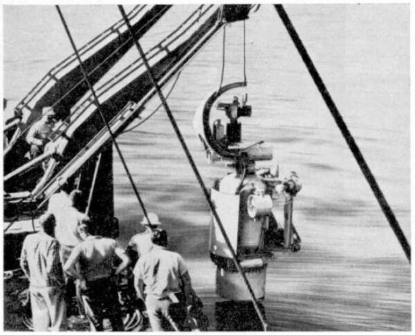 The only vehicle capable of reaching a depth of 8,400 feet was the Navy’s manned bathyscaph Trieste, which found and photographed the wreckage. Unfortunately, Trieste had little capability to retrieve objects.