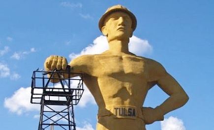 Fully refurbished in the late 1970s, the Golden Driller — by now a 43,500-pound tourist attraction — is the largest free-standing statue in the world, according to Tulsa city officials. “Over time the Driller has seen the good and the bad,” said Tulsa Girl.
