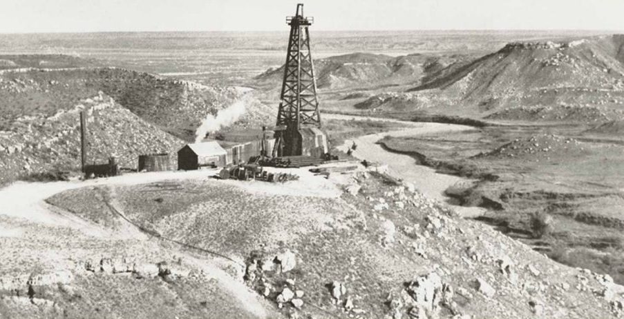Cable-tool drilling in the Texas Panhandle’s Hutchinson County led to a 1926 oilfield discovery at Dixon Creek Canyon, where the town of Borger would soon be born. Photo courtesy Hutchinson County Historical Museum.