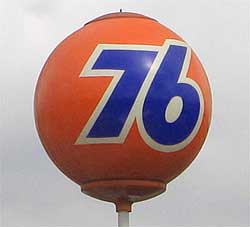 The Union Oil Company “76” brand was launched at service stations in western states. The brand’s orange circle with blue type logo was adopted in the 1940s, and the “76” orange orb first appeared at the 1962 World’s Fair in Seattle. A smaller version of the ball proved so popular that millions would be given away as bright attachments to car antennas.