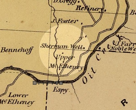 Foster Farm Oil Company incorporated in February 1865. Based in Philadelphia and capitalized at $1.5 million, the company offered 150,000 shares to the public. “The Foster Farm is owned by a company of ten gentlemen, and is known as the Foster Farm Oil Company,” reported the The Titusville Morning Herald. E.C. Bishop (Elisa Chapman ) was principal owner as well as one time general agent, treasurer, and superintendent.