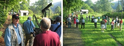 On Saturday morning, Marilyn Black, of the Oil Region Alliance, joined the tour to provide a running commentary as the group explored the Oil Creek Valley. First stop was the McClintock Well No. 1, spudded in 1861 and believed to be the oldest well in continuous production in the world. Today, the well is pumped a few times a year, produces more brine than crude, but supplies enough for souvenir bottles sold at the celebrated Drake Well Museum.