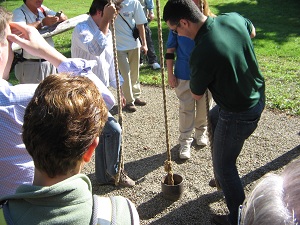 The tour included a chance to “make hole” using a spring pole outside the Drake Well Museum. Photo by Bruce Wells