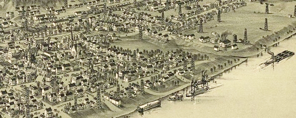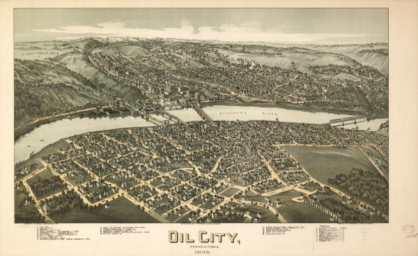 Recommended Reading: Bird’s Eye Views: Historic Lithographs of North American Cities (1998); Oil Boom Architecture: Titusville, Pithole, and Petroleum Center, Images of America