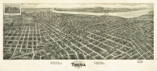 This Fowler print of Tulsa, Oklahoma, was published in 1918 — when Tulsa was known as the “Oil Capital of the World” after discovery of the Glenn Pool oilfield in November 1905, four miles south.