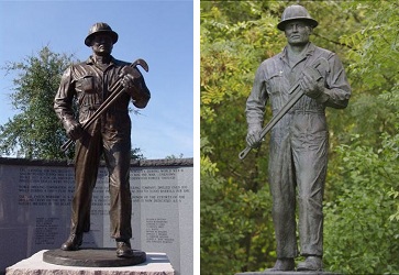 A bronze Oil Patch Warrior statue stands in Ardmore, Oklahoma. Its twin stands in Nottinghamshire, England. Photos courtesy Dukes Wood Oil Museum (closed in 2021).