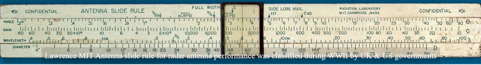 From David Rance’s collection: MIT Antenna slide rule for radar antenna performance — classified during World War II.
