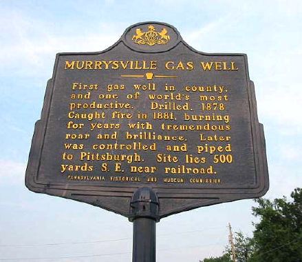 A marker on Route 22 at Murrysville, Pennsylvania, commemorates the Haymaker brothers’ historic natural gas well of 1878.