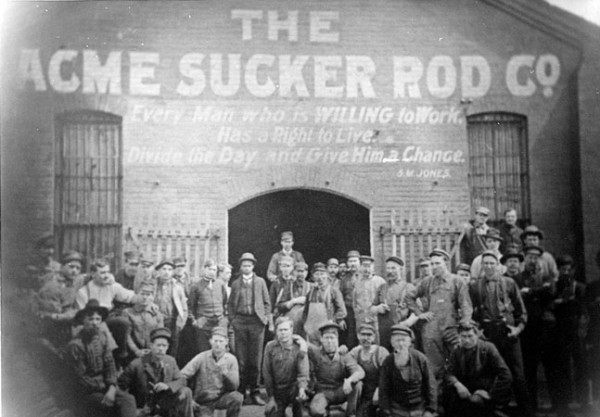 Long before his political career as a progressive reformer, Jones had worked in newly discovered Pennsylvania and Ohio oilfields. He had visited many boom towns, including the infamous Pithole (1865), before returning to Ohio to found the Acme Sucker Rod Company in 1892.