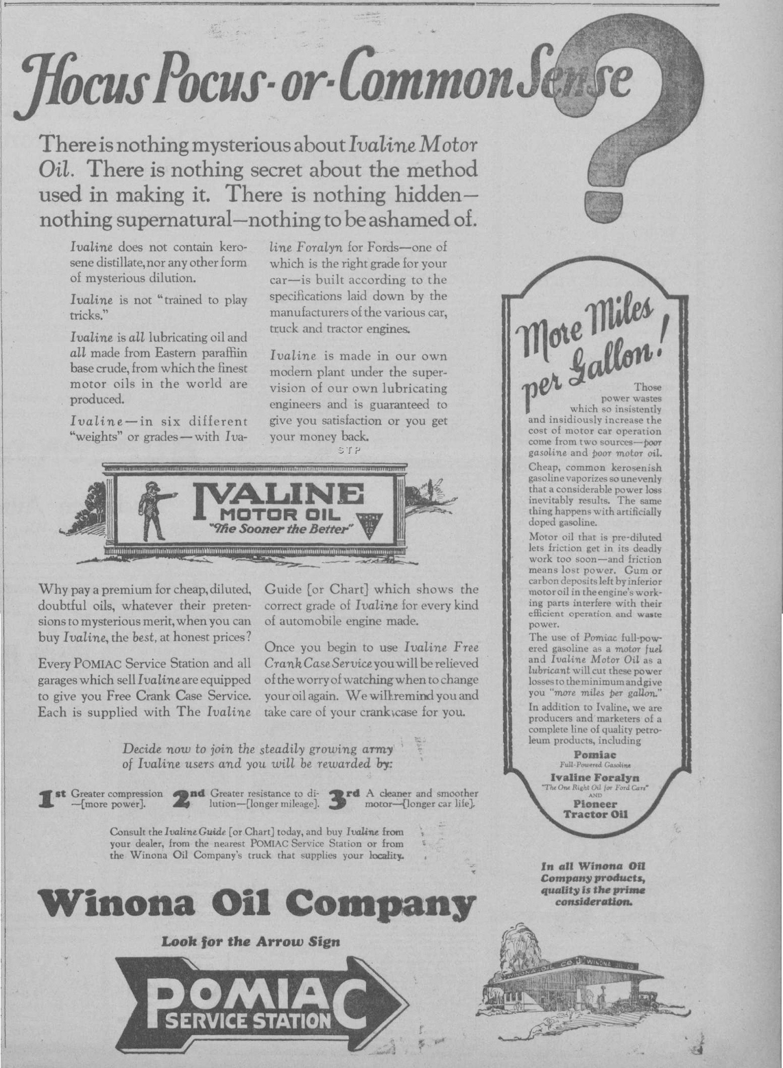 “Hocus Pocus-or-Common Sense?” Ivaline Motor Oil sales did not help the Winona Oil Company to survive its drilling ventures in the highly competitive oilfields of the Powder River Basin.
