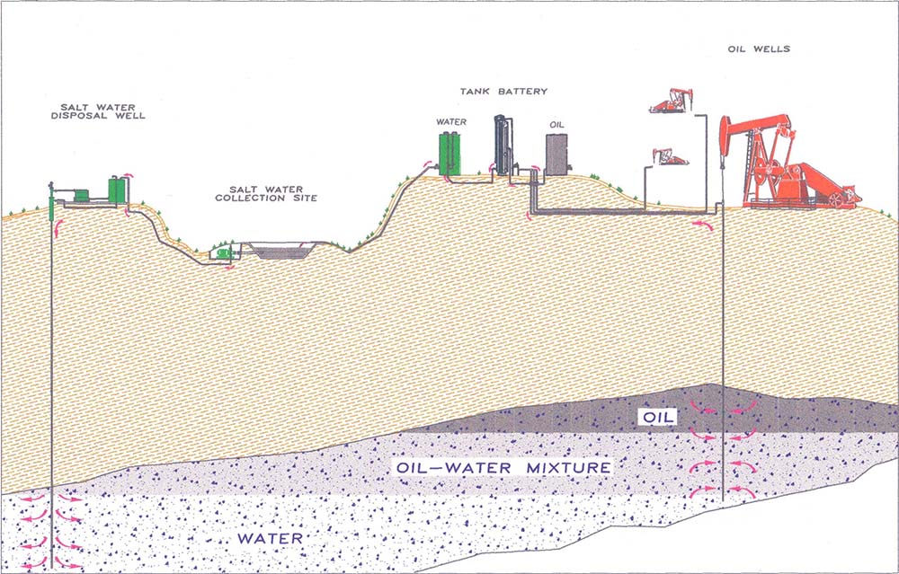 Saltwater injection wells improve oil production and keep marginal East Texas wells viable. Illustration courtesy East Texas Salt Water Disposal Company.