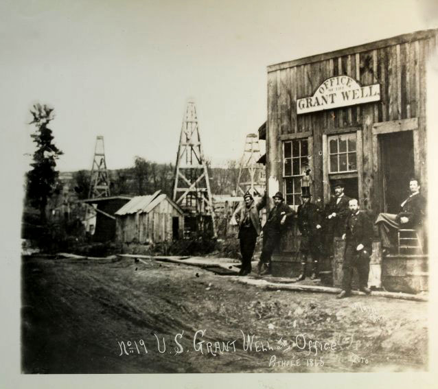 At Pithole, Pennsylvania, an 1865 photograph shows the No. 19 Grant well (and office), presumably named after the Union Army’s top general, according to the Oil Region Library Association.