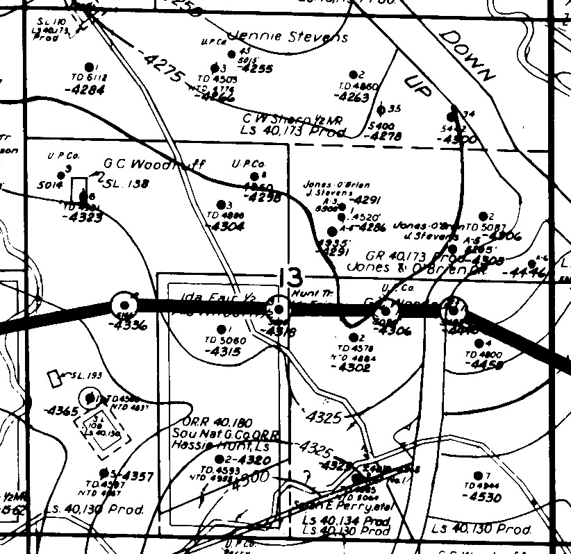 The top-secret seismic data prompted the company to choose a drill site on the Green Crowder Woodruff family farm on Perry Creek (S.W. Corner, N.W. Quarter, Section 13, Township 10 North, Range 3 West).