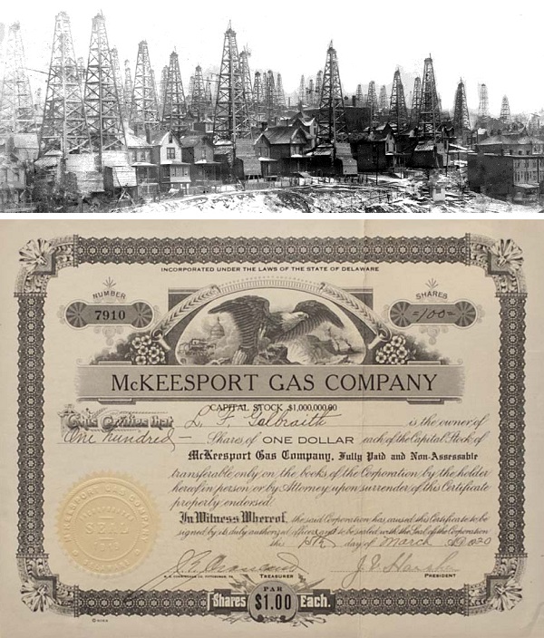 Citation Information: Article Title: “McKeesport Gas Company.” Authors: B.A. Wells and K.L. Wells. Website Name: American Oil & Gas Historical Society. URL: https://aoghs.org/stocks/mckeesport-gas-company. Last Updated: August 21, 2025. Original Published Date: April 29, 2013.