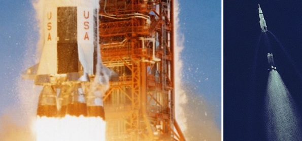 Kerosene fueled the Saturn V’s five main engines used for getting Apollo astronauts to the moon. NASA photo detail.