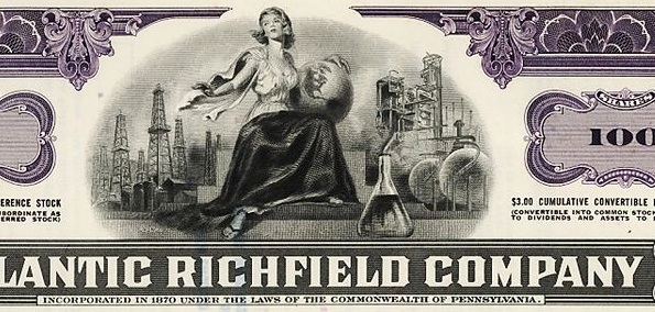 A petroleum company’s old oil stock certificate vignette sometimes has value for collectors of scripophily – the buying and selling of certificates after they have no redeemable value as a security.
