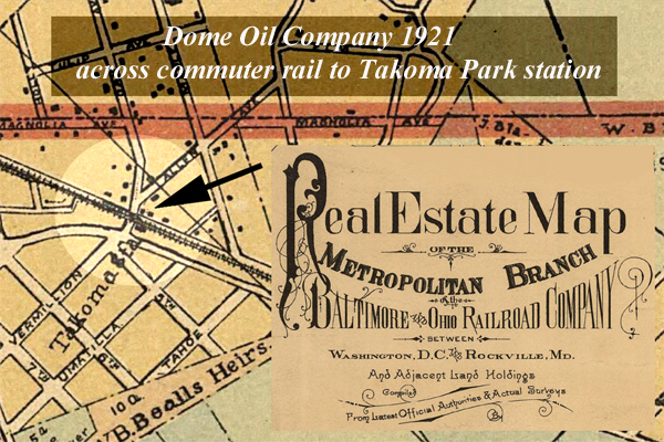 According to Arcadia Publishing’s 2011 book Takoma Park, Images of America, the Dome Oil Company was established by Ernest C. Ruebsam and Harry Stevens.