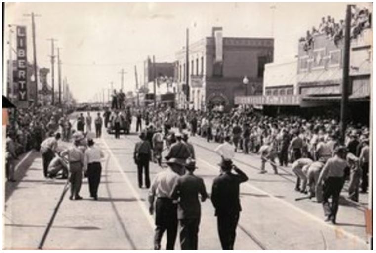 “Downtown Electra was packed in 1951 when the city celebrated the 40th anniversary of the Clayco No. 1 well discovery.” Photo and caption from downtown anniversary parade courtesy Electra Times Record News.