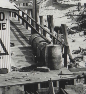 Detail of Puente Oil Company photo with 55-gallon oil drums.