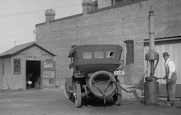 Citation Information: Article Title: “First Gas Pump and Service Station.” Authors: B.A. Wells and K.L. Wells. Website Name: American Oil & Gas Historical Society. URL: https://aoghs.org/transportation/first-gas-pump-and-service-stations. Last Updated: December 1, 2025. Original Published Date: March 14, 2013.