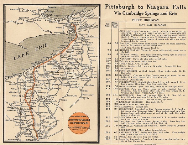Until about 1925, Gulf Refining Company was the only oil company to issue maps. Gulf was formed in 1901 by members of the Mellon family of Pittsburgh. Map image courtesy Harold Cramer.