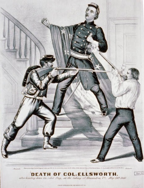 Born in 1865, Colonel E.E. Walters wasn’t actually a Colonel. He was named in honor of the first Union officer killed in the Civil War, complete with rank. Currier and Ives engraving, 1861. Image courtesy Library of Congress.