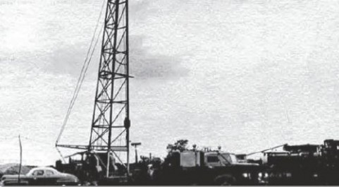 The world’s first commercial hydraulic fracturing job (above) occurred on March 17, 1949, about 12 miles east of Duncan, Oklahoma. Photo courtesy Halliburton.