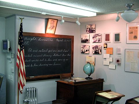 One museum exhibit is a recovered blackboard that reads, “Oil and natural gas are East Texas’ greatest mineral blessing.” Photo by Bruce Wells.