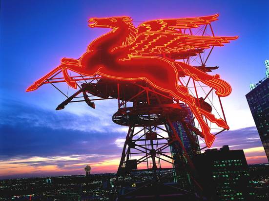The Mobil Oil (now ExxonMobil) trademark has been a feature of Dallas since first welcoming attendees to a 1934 convention of petroleum company executives. The Magnolia building’s Pegasus has remained one of the most recognizable corporate symbols in American history — and a marketing icon rivaling the Sinclair dinosaur.