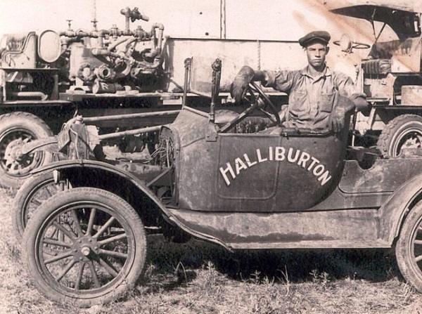 George Halliburton, one of Erle P. Halliburton’s younger brothers, posed in a Ford Model T around 1929. “George, my grandfather, and several of E.P.’s brothers were employed with the company for many years,” explained Halliburton Operating Company President Cole Halliburton in 2020. A Halliburton self-propelled truck with cementing pumps can be seen in the background. Photo courtesy Timothy Johnson.