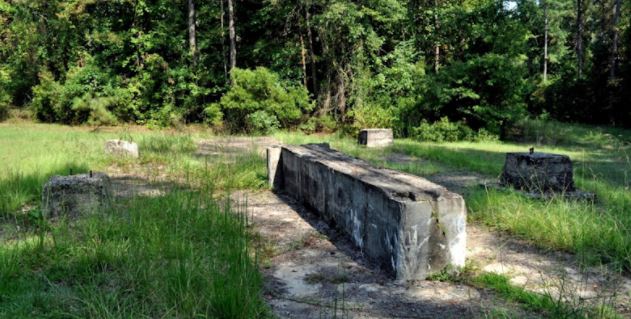 Concrete foundations are all that remain of Alabama’s first oil well, the A.R. Jackson Well No. 1, completed in 1944 near Gilbertown. Photo courtesy Explore Rural S.W. Alabama.