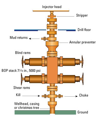 This onshore BOP configuration from Schlumberger is typical for a well drilled with a hole size greater than four inches in diameter.
