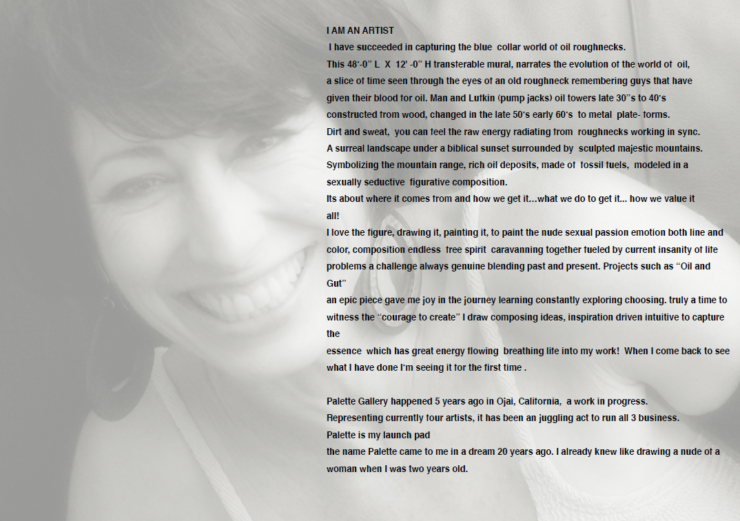 “My drawings and the landscape in my painting resemble the Buena Vista oilfields, as stated by roughnecks that offered their nods of appreciation,” she said in 2016.