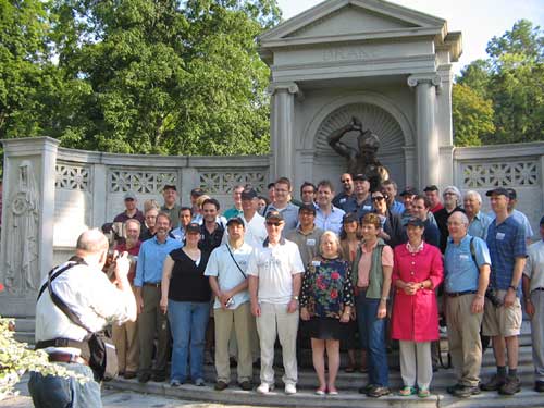 John Jennrich of the Federal Energy Regulatory Commission photographs the group during a 2009 visit to the Edwin L. Drake Memorial in Titusville, Pennsylvania. “The six-hour trip from Washington to the Pennsylvania oil region was enlivened by a series of videos presented by Bruce Wells, executive director of the American Oil and Gas Historical Society.”