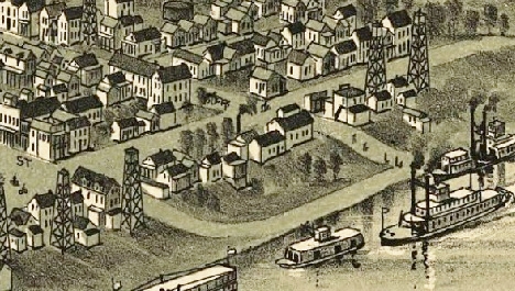 Recommended Reading: Bird’s Eye Views: Historic Lithographs of North American Cities (1998); Oil Boom Architecture: Titusville, Pithole, and Petroleum Center, Images of America