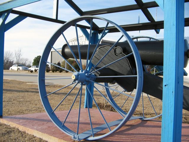 Another cannon can be found on exhibit in Bartlesville, Oklahoma, near the first Oklahoma oil well, drilled a decade before 1907 statehood. Exhibits at Discovery One Park include an 84-foot cable-tool derrick first erected in 1948 and replaced in 2008.