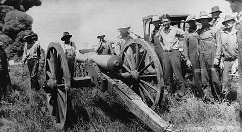 Oilfield operators used muzzle-loading cannons to fire solid shot at the base of burning oil tanks, draining the oil into ditches to extinguish the blaze.