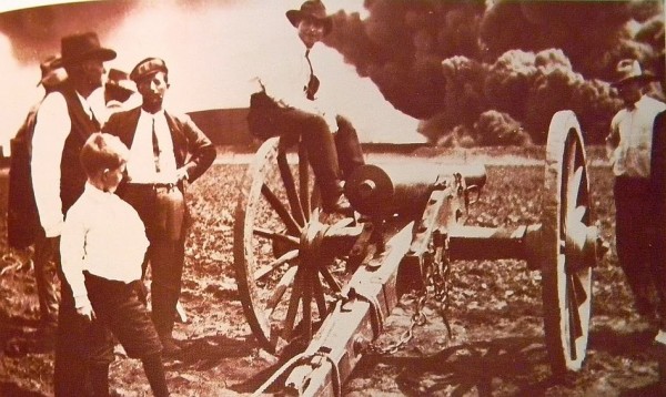 Mobil Oil in 1969 donated to Corsicana, Texas, a cannon that once stood at the Magnolia Petroleum tank farm “to shoot a hole in the bottom of the Cyprus tanks if lightning struck.”