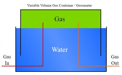 First used in the late 19th century for manufactured gas (and later for natural gas), gasometers were large, cylindrical containers for storing gas at near atmospheric pressure at ambient temperatures. The volume of stored gas varied, with pressure added from the weight of a movable cap.