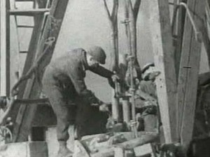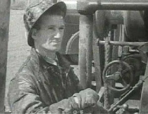 American volunteer derrickhand Herman Douthit fell to his death. Photo detail from American Heritage Center, University of Wyoming.