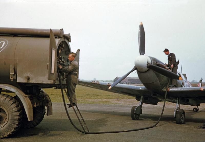 U-Boat attacks on convoys threatened to cut off England’s oil supply. In 1942, Royal Air Force ground crewmen refueled a Supermarine Spitfire Mark II. Photo courtesy Imperial War Museum.
