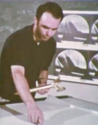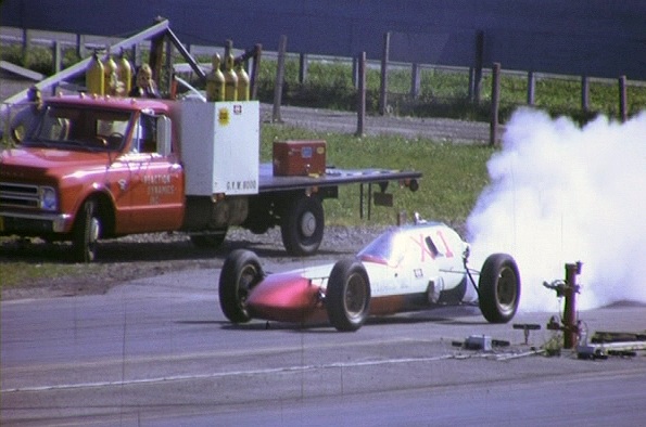 Richard Keller and a small group of engineering students tested the Blue Flame chassis and wheel design (photo from 8-mm Keller home movie).