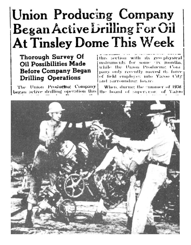 Union Producing Company of Houston, Texas, leased much of the area. Company landmen acquired mineral rights to about 2,500 acres around Tinsley. As other exploration companies rushed to acquire leases, Union Producing Company began seismographic testing 10 miles southwest of Yazoo City.