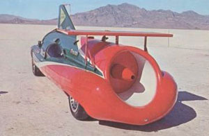 Nathan Ostrich built the first jet car in 1962 using an engine originally designed for the North American F-86 Sabre jet fighter. Powered by a General Electric J47 at Utah’s Bonneville Salt Flats, his Flying Caduceus set a world record of more than 330 mph.