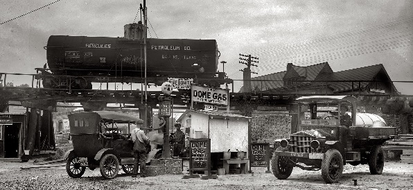 The filling station on the B&O railway was among the first in D.C. to offer fuel oil as an alternative to coal as well as gasoline, which was then at 40 octane to 60 octane. The higher the octane, the higher compression the fuel can withstand before detonating (also see Ethyl Anti-Knock Gas).