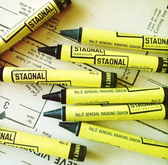 Meanwhile, the Pennsylvania inventors mixed their carbon black product with oilfield paraffin and other waxes to introduce a paper-wrapped black crayon marker for crates and barrels. The company promoted the marker as being able to “stay on all” and accordingly named “Staonal.”