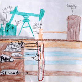 A fifth-grader’s skillful use of crayons illustrates oil production. Image courtesy Pioneer Oil Museum of New York, Bolivar.