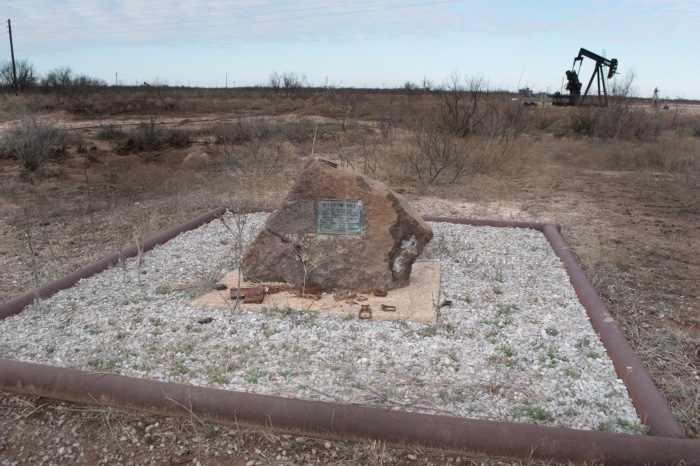 A historic marker for the Clayco No. 1 well just outside Electra includes the names of the drilling crew, the well’s depth (1,628) and, “Here flowed oil April 1, 1911, opening one of world’s largest oilfields.” Photo courtesy Wichita County Historical Commission.