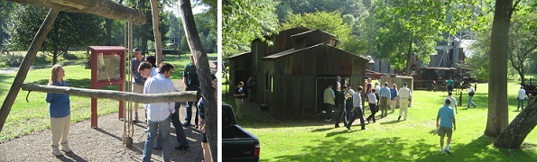 A curator leads a tour of the Drake Well Museum’s grounds in 2009. Exhibits tell the story of the beginning of the oil industry with operating machinery and historic buildings. Photos by Bruce Wells.